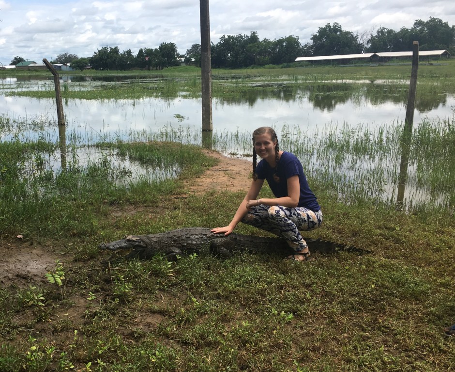 Finally, I did some exploring this month. I took my personal days (We get four a month) and I traveled up north to see my friend Amina. One day we went to a Filipino cultural event that a few volunteers coordinated to share with the community. They had food and games, and taught about the history, geography, language, and other aspects of the culture. I enjoyed meeting new people and learned a lot myself. Then, we traveled to Bolga (They call this the Accra of the North) and stayed at a cute little guesthouse that a volunteer lives at. Our room was a round mud hut with a thatch roof. We got dinner in town and met some of the volunteers in the Upper East. While in Bolga, we took a day trip to Paga. There we went to the Paga Crocodile Pond. This pond is famous for their docile crocodiles, but there are many places in Ghana where crocodiles peacefully coexist with communities. These crocodiles are considered sacred, and killing one is a capital offense equivalent to homicide. When a crocodile dies, they believe someone in the community will die. They called one out of the water, and we got to touch it and take pictures with it before they fed it a fowl and sent it back into the water. It was quite the experience. While in Paga, we also visited Pikworo slave camp. It was a beautiful place with a heartbreaking history. The guide was very knowledgeable and showed us where all of the different parts of the camp were. He told us how the slave traders captured the people and kept them in this camp until they were sold and made to walk barefoot to the coast. We saw where they got their water and ate, and some of the locals showed us how they drummed using the rocks to keep themselves entertained. They were told that they were being given a better life and would be educated to one day return home, and so they performed dances and drumming to express gratitude. I am glad we went because it is such an important part of the history that I haven’t learned about before. Before leaving Bolga, we stopped by the cultural center where I got some beautiful woven baskets. Bolga is famous for these, and I was overwhelmed by the selection. I loved this little city and am sad that it is so far from me. I probably won’t be back, but I am happy I got to see it.